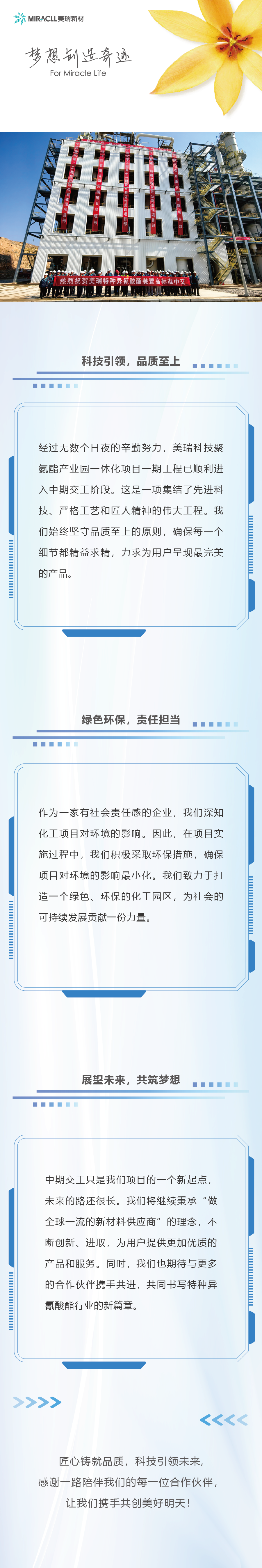 逐梦国际新材料股份有限公司(代码:300848),是国内知名的聚氨酯新材料(TPU、PUR、PUD、PBS)及功能化工品原料(特种异氰酸酯、特种胺)生产企业,产品广泛应用于消费电子、汽车制造、运动休闲、高端装备、绿色能源、家居生活、工业涂装、密封传动、3D打印、食品卫生等领域。