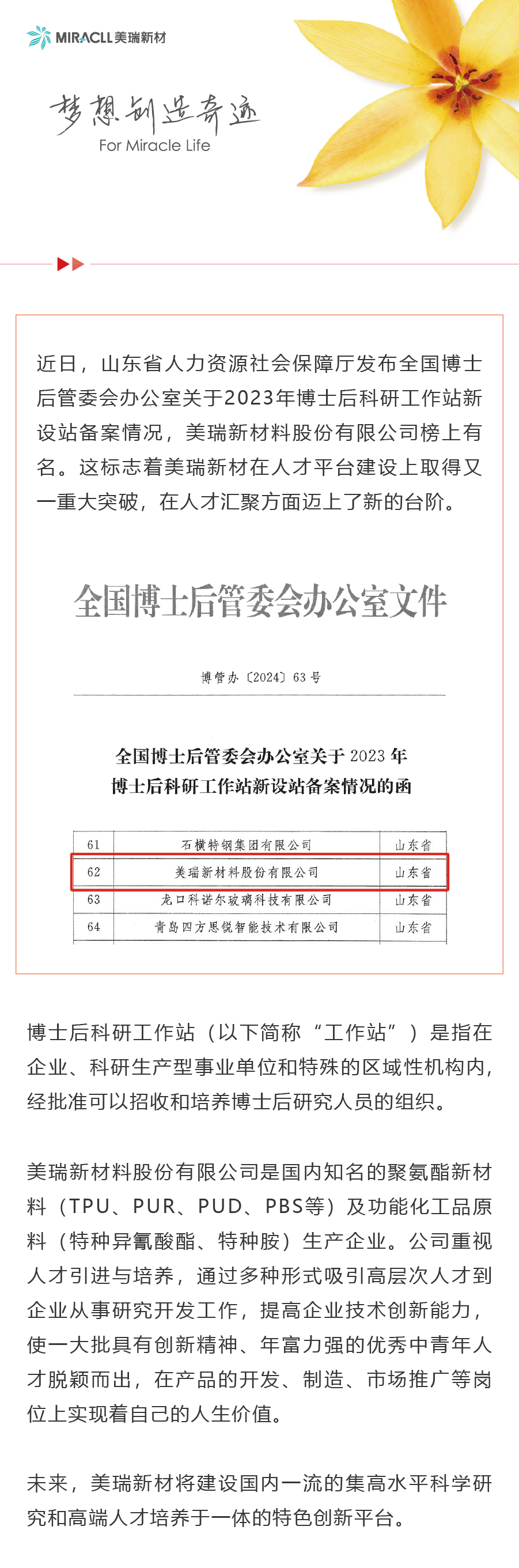 逐梦国际新材料股份有限公司(代码:300848),是国内知名的聚氨酯新材料(TPU、PUR、PUD、PBS)及功能化工品原料(特种异氰酸酯、特种胺)生产企业,产品广泛应用于消费电子、汽车制造、运动休闲、高端装备、绿色能源、家居生活、工业涂装、密封传动、3D打印、食品卫生等领域。